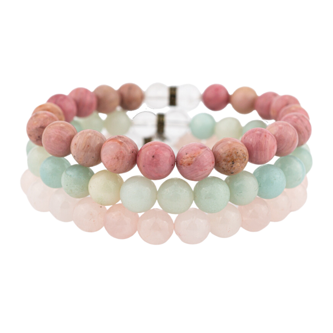 Introducing our empowering and supportive Cancer Bracelet Set, a celestial fusion of Rhodonite, Amazonite, and Rose Quartz...
