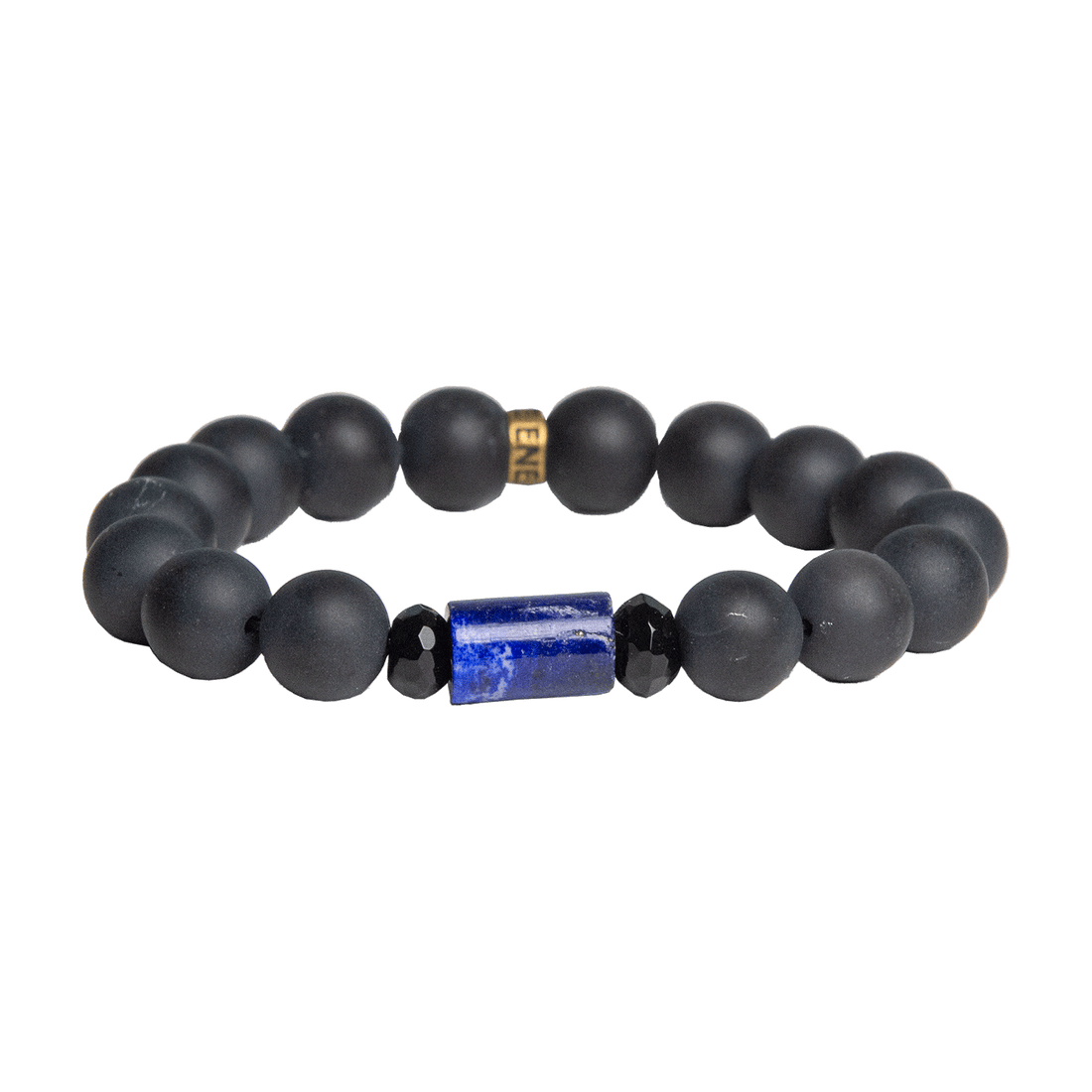 Introducing the Purpose Bracelet, featuring sleek matte Black Onyx bead body and single Lapis Lazuli...