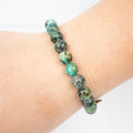 In today’s fast-paced world, tranquility is a sought-after treasure. Our bracelet serves as your personal sanctuary, offering an oasis of calm in the midst of chaos. Feel the soothing energies of African Turquoise as it promotes inner peace and emotional balance. It's not just about carrying a piece of jewelry; it's about wearing a talisman that shields you from life's stresses, helping you remain centered and composed.