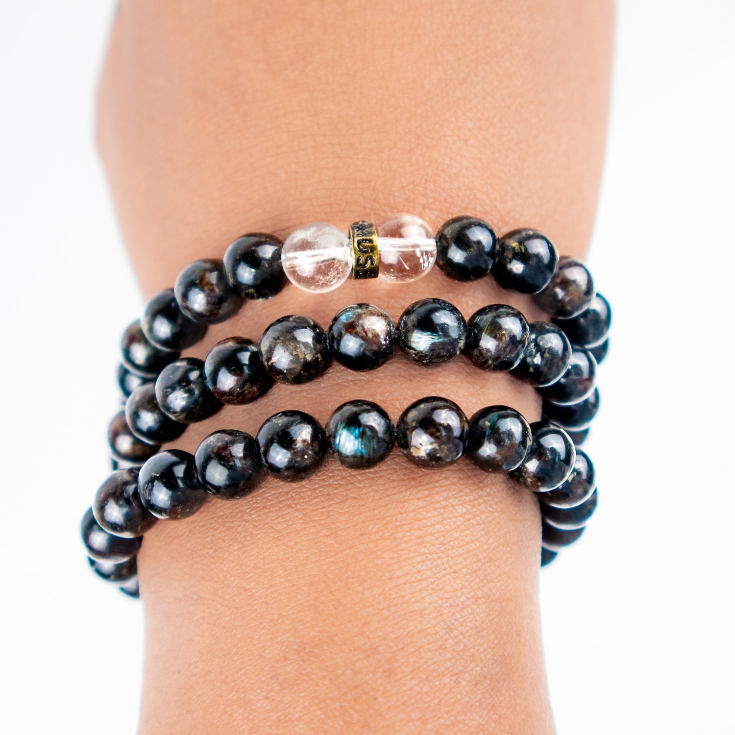 Why settle for ordinary when you can wield the extraordinary? Heather, our resident crystal expert, unveils a game-changing tip: power-banding your Arfvedsonite bracelets. By wearing one on each wrist, you double the potential for emotional clarity, release, and the transformation of negative patterns into optimistic pathways.