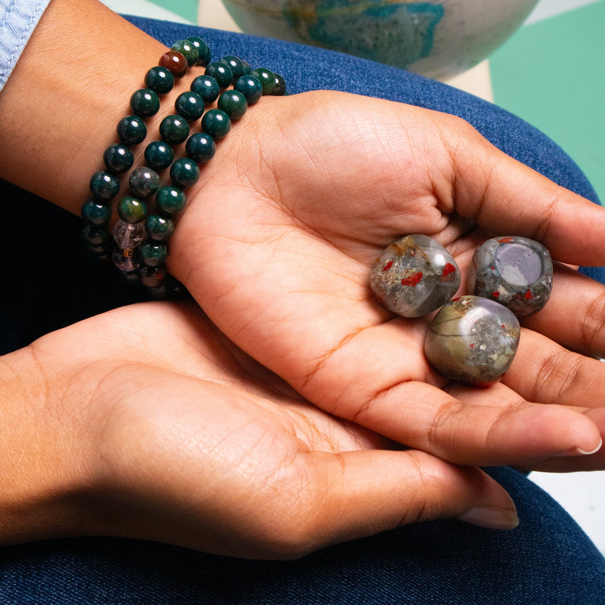 Attract these three life-transforming benefits with our Bloodstone Bracelet, and elevate your everyday existence. This bracelet is thoughtfully designed, featuring premium bloodstone beads and expert craftsmanship. Its aesthetic charm effortlessly complements your style, making it a versatile accessory for any occasion.