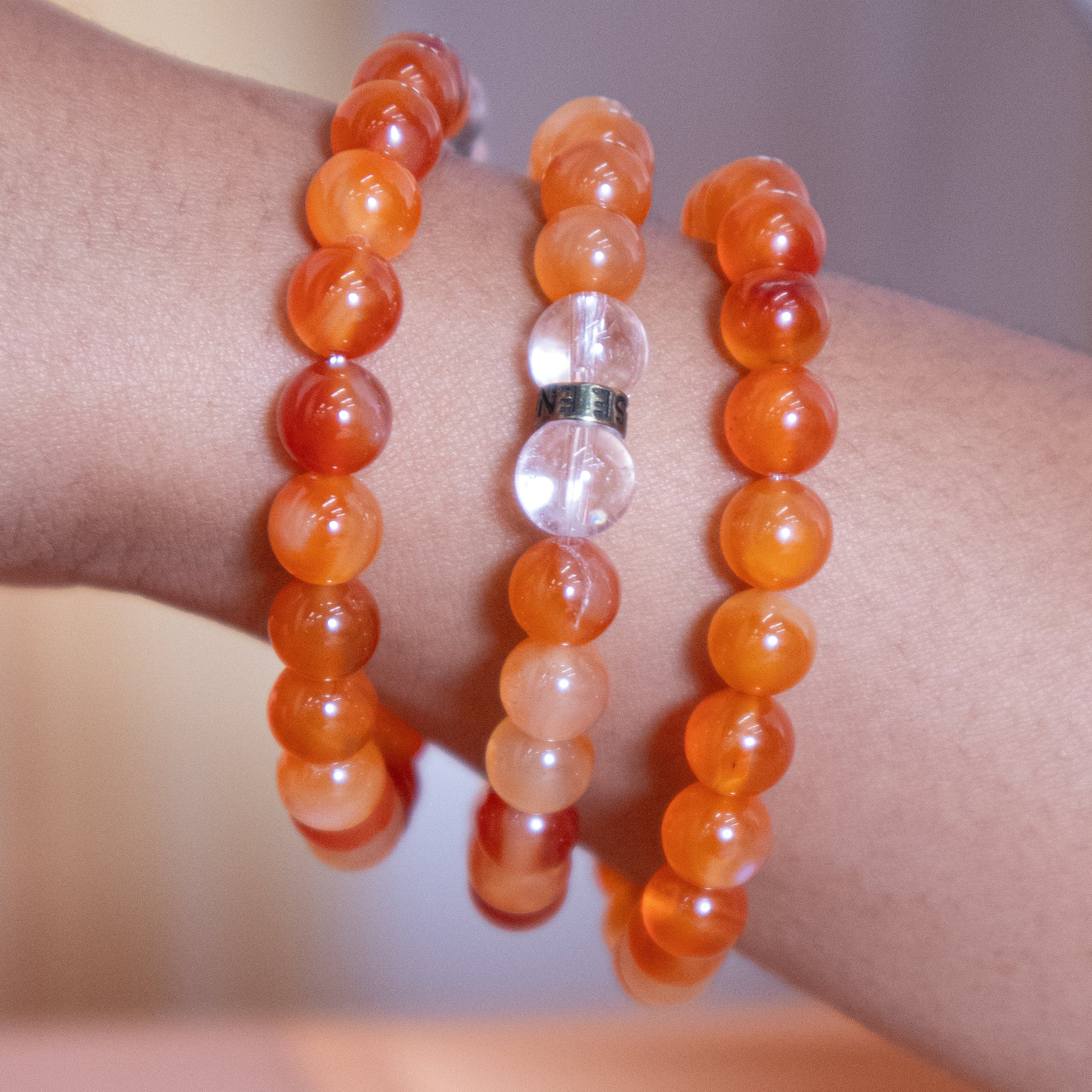3. Confidence: Walk with unwavering confidence, knowing you're adorned with the power of Carnelian. It's your personal cheerleader, bolstering your self-esteem and helping you conquer self-doubt. The world can be challenging, but with a Carnelian Bracelet, you'll stride through life with assurance and assertiveness.