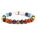Chakra is a Sanskrit word for a series of circular wheels of energy, in and around the body. It is believed that we have energy centers in the soles of our feet and the center of our palms. The 7 chakras line up in the center of your body. Each chakra is associated with a color, musical note, shape, belief system, element and specific crystals. The 7 chakras offer valuable information to help heal the mind, body and spirit. Our Chakra Healing Bracelets were created with powerful chakra stones -- one or more for each of your 7 chakras -- to balance, cleanse and align your chakras. These specific stones were chosen for their ability to work together and amplify each other's energy and healing properties.