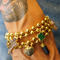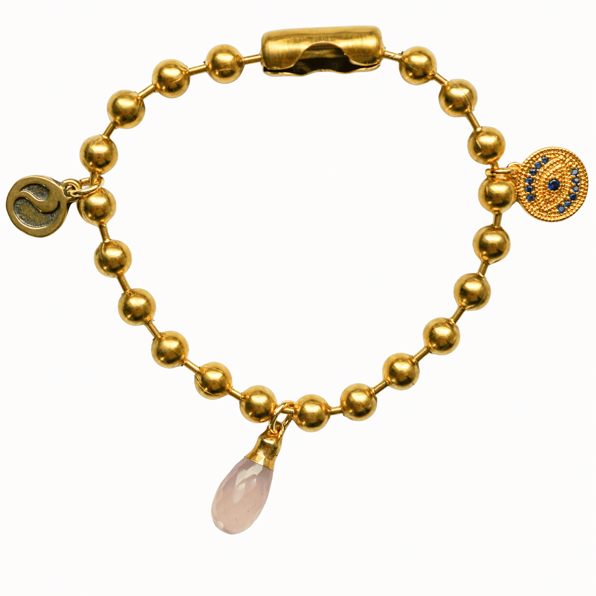 Gold Charm Bracelet with CZ Evil Eye & Rose Quartz