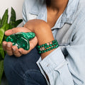 Introducing the exquisite Malachite Bracelet: a true gem of nature that encapsulates three remarkable benefits in one stunning piece of jewelry - transformation, attraction, and wealth. Crafted to captivate, the in this bracelet will not only elevate your style but also elevate your life in countless ways.