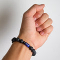 Introducing the Purpose Bracelet, featuring sleek matte Black Onyx bead body and single Lapis Lazuli crystal — they come together to create a harmonious blend of elegance and energy. Crafted with precision and infused with purpose, this bracelet is designed to empower you with its sleek and minimalist aesthetic and the healing properties of its natural gemstone beads.