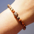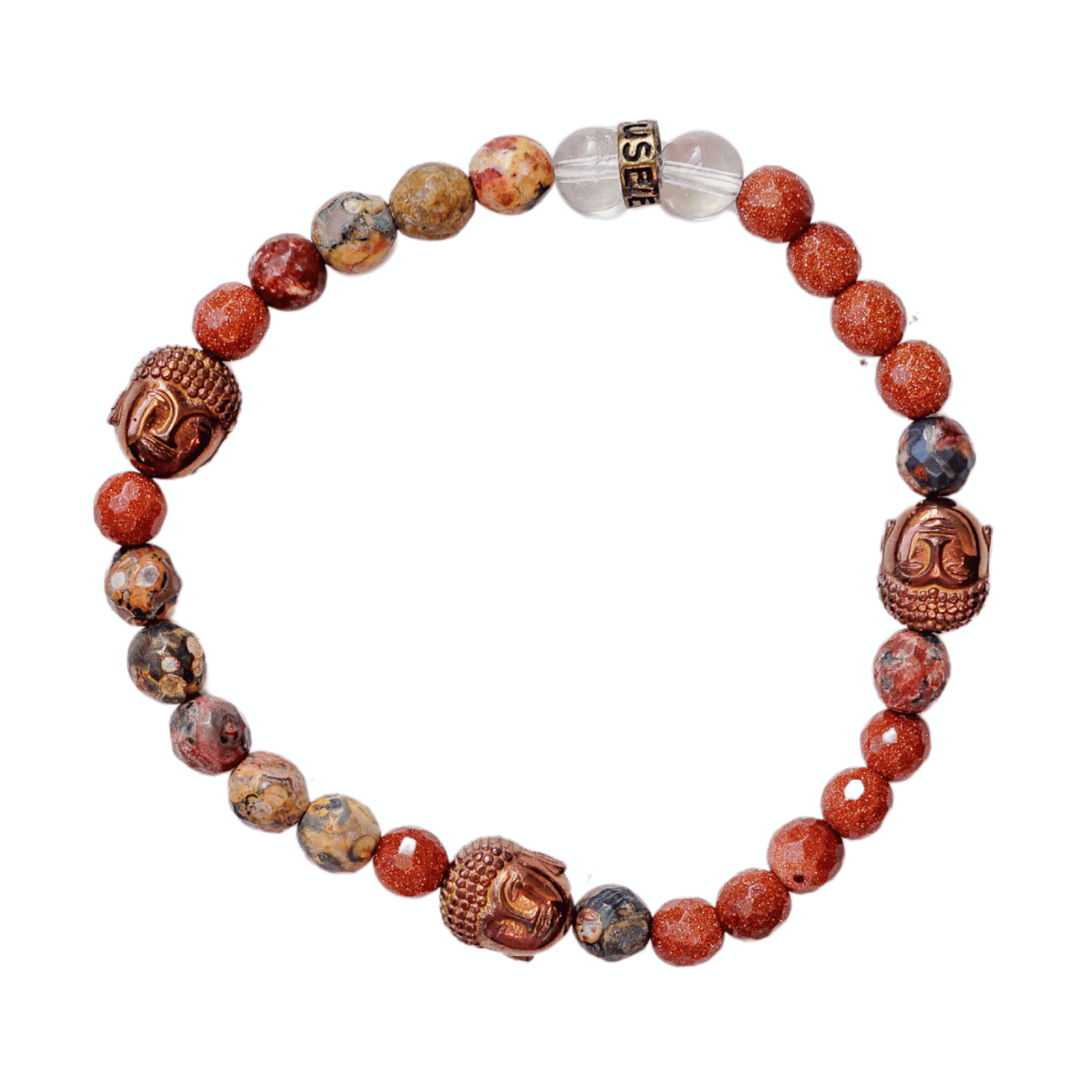 The Talisman of Power Bracelet is your energetic anchor in moments of challenge and transformation. Crafted with Leopard Skin Jasper, Goldstone, and Bronze Hematite Buddha beads, this powerful piece is designed to fortify your spirit and keep you moving forward—no matter what stands in your way.